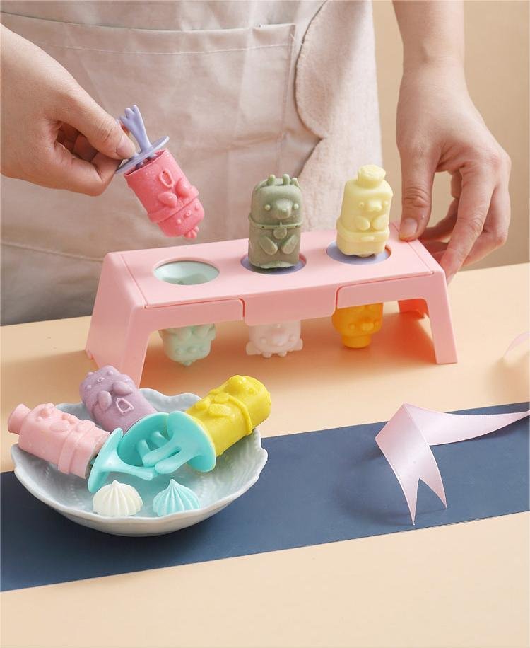1pc Silicone Ice Tray Mold Household Homemade Popsicle Ice Cream Mold Cartoon Ice Cube Removable And Washable Ice Mold